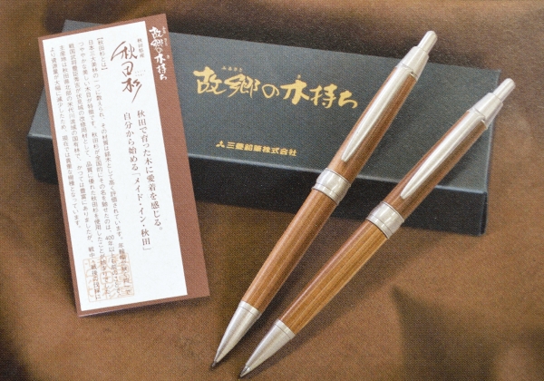 メイドイン秋田!秋田県産の杉材が使用されている、温かみのある質感と成熟のデザインで秋田のぬくもりを感じるペンです。